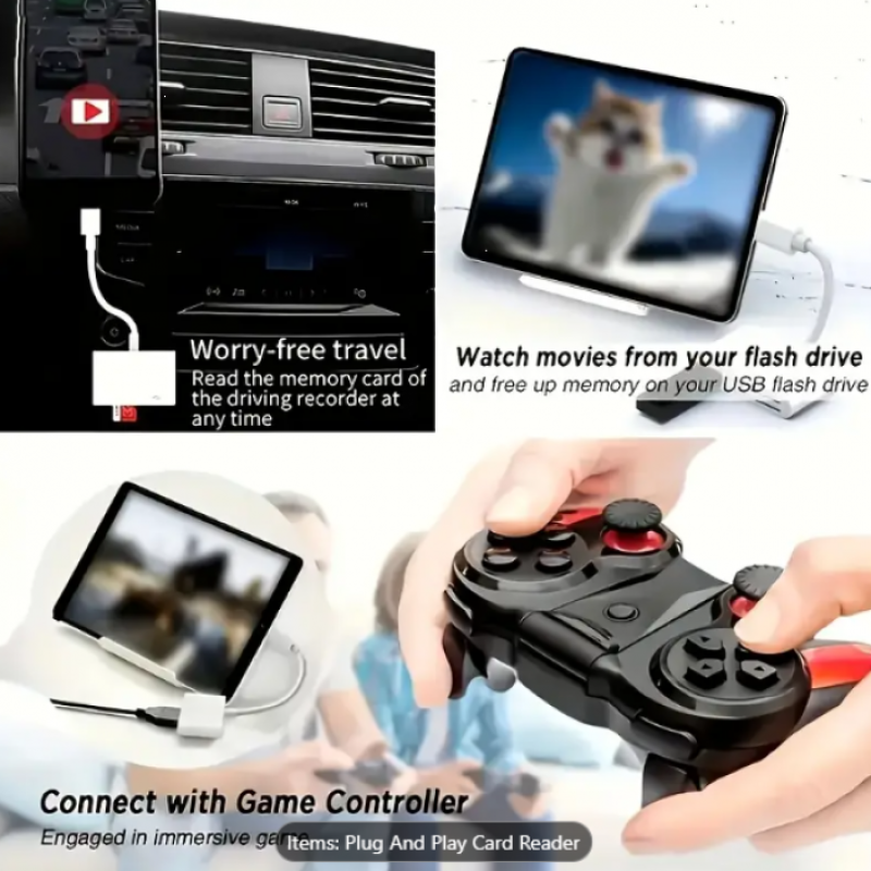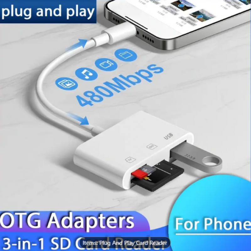 The 3-in-1 SD Card Reader with USB Adapter is a compact and versatile solution for fast and easy data transfer between your memory cards, smartphones, tablets, and computers. Designed for convenience and wide compatibility, this plug-and-play card reader is ideal for photographers, content creators, students, and everyday users who need quick access to files anytime, anywhere.