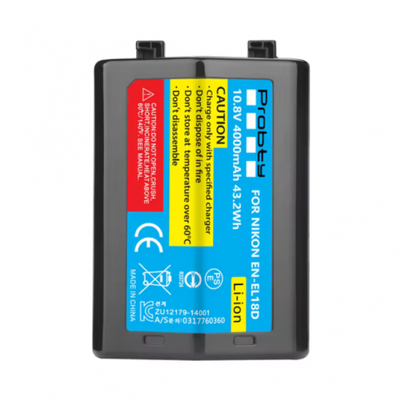 - High-capacity replacement for Nikon EN-EL18, EN-EL18a, EN-EL18b, EN-EL18c, and EN-EL18d batteries.