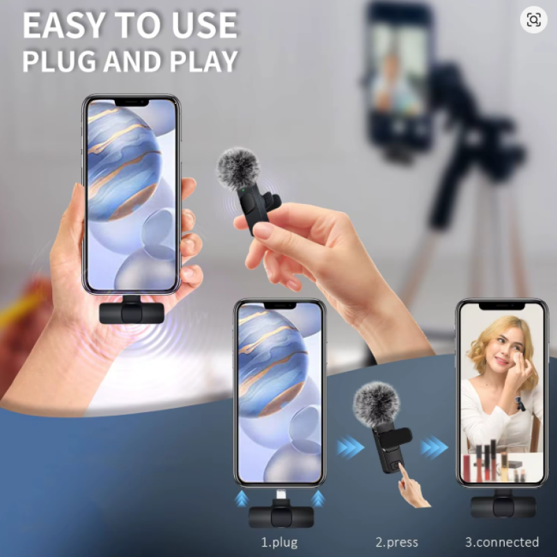 Tags: K60 wireless microphone, lavalier mic for iPhone, USB-C wireless mic, mini clip microphone, wireless mic for Android, live streaming microphone, gaming microphone, vlog mic, plug and play microphone, rechargeable lavalier mic,
