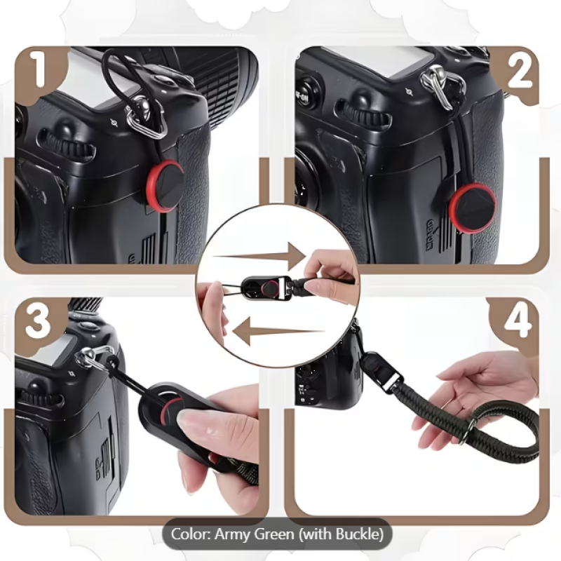 Tags: paracord camera strap, DSLR wrist strap, anti-drop camera strap, outdoor camera hand strap, quick release camera strap, professional camera accessory, slip resistant wrist strap,